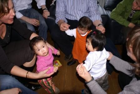 het was ook een leuk weerzien met de meeste adoptiekindjes van onze groep: Zeno voelde zich ook bij ons al goed thuis en liep heel de tijd tussen alle mensen door (achterna gezeten door beurtelings Danny en Linda natuurlijk)... Josephine Mei was helemaal opgekikkerd na haar laatste weekje China met toch wel hoge koorts en andere toestanden... Suo schitterde weer in het oranje (zouden ze die kleur gepatenteerd hebben ten huize Degeest-Keppens ?) Isali & Anali dwarrelden vrolijk rond en betoverden iedereen met hun charmante snoetjes... en na de late middagdut kwamen ook Qi en Jing ons nog vergezellen om het feestje af te sluiten !