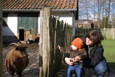 Donderdag voormiddag zijn we dan naar Bornem naar de kinderboederij geweest. Ze heeft daar vol bewondering gekeken naar dieren die ze echt nog nooit gezien had. Ze was verzot op de kippen, en de geitjes vond ze natuurlijk ook de max. Schrik ? Nee hoor... bij ons thuis loopt er ook zo'n groot wit ding rond...