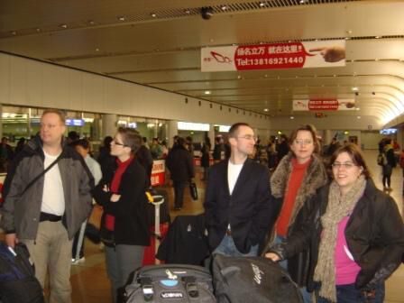 Hier staan we klaar voor vertrek in de luchthaven van Beijing met enkele van de groep die mee naar Anhui gaan: bart en katleen (links) hebben ons vervoegd (zij waren dus al 1 dag vroeger naar china gekomen).