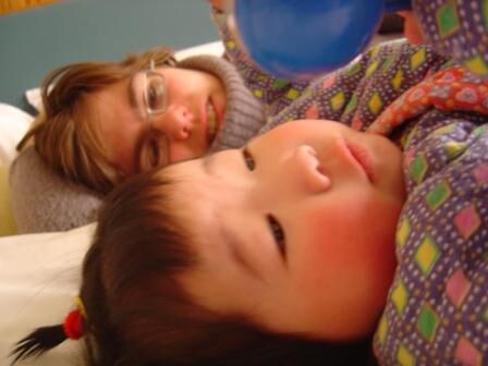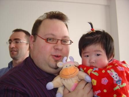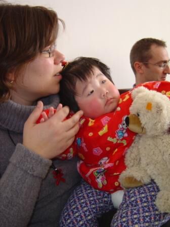 Groetjes, Veerle (Ons Ella Yun slaapt nu al 2 uur en een half ! Straks moet ik ze nog wakker maken, want om vier uur, komt de directeur van het weeshuis nog eens naar het hotel en moeten we allerlei papieren invullen.)