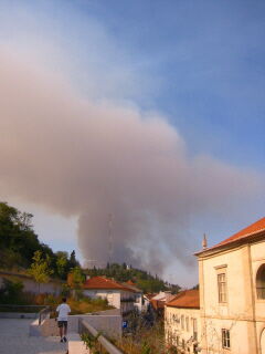 Na een laatste nacht te hebben doorgebracht in ons pension in Lissabon verzamelden de vroeg-opstaanders zich in het koffiehuis, wat verder langs de straat gelegen, om koffies te drinken. Rond 8u 's morgens kwamen dan de laatsten aandruipen. We zetten koers naar de metro richting Oriënte, waar het Parque das Nações te bezichtigen is. Enkele groepsleden gingen per taxi. Daar aangekomen deden we inkopen in de supermarkt: een superontbijt bestaande uit fruitsap, broodjes, kaas, confituur, hesp, chocoladekoeken. Dit aten we dan op in het park, waarna er nog een half uurtje overbleef om het park - een restant van de wereldtentoonstelling - te bezoeken. Tegen de middag namen we de trein naar het stadje Tomar - een 2 uur durende rit. In Tomar aangekomen zetten we koers naar ons pension terwijl het op straat moordend heet was - 39°C. Het bleek een heel mooi pension te zijn, met kamers voor 2 en individuele bedden. Eens geïnstalleerd deden we eerst een terrasje aan, om vervolgens koers te zetten richting Convento de Cristo, een klooster met resten van een kasteel, dat zich in de heuvels boven het stadje bevond. Hier bleven we een dik uur. Op de terugweg konden we rookpluimen zien die opstegen uit de omringende bossen. Terug in't stadje zetten we koers naar het lokale zwembad waar we tot 19 uur bleven, ondanks de door de rook verduisterde zon en de neerdwarrelende as, en waar Olivier niet van de hoogste springplank durfde springen. Later op de avond, bleek de zoektocht naar een restaurant een moeilijke opgave, omdat er niet veel keuze was, en er ook nog veel restaurants gesloten waren. We belandden uiteindelijk in een Siciliaans restaurant. Later op de avond deden we nog een terrasje aan waarna het richting bed ging. Kirsten