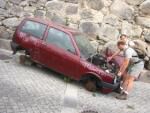 Alweer een drukke dag voor de boeg! Na een zalige douche en stevig ontbijt, werden we door José, de verantwoordelijke van Opus Kolpin (nvdr: Obra Kolping dus) langs hun werken van barmhartigheid en lokale bezienswaardigheden rondgeleid. De eerste etappe was MAZES. Kolping ondersteunt het schooltje in het afgelegen bergdorpje. Daarna werden we na een fikse beklimming in de blakende zon naar een nog verder afgelegen dorpje gegidst. Door de stadsvlucht bleven er maar 2 bewoners over, waaronder een 86-jarig vrouwtje. De huisjes hebben een nieuwe bestemming gekregen als stal (geiten/koeien) (nvdr: die bestemming hadden ze al altijd, boven sliepen de mensen, onder de dieren). Blijkbaar zou dit dorpje op de lijst van UNESCO kunnen belanden (nvdr nog eens : José vertelde dat de regering het dorpje wilde opkopen om er een toeristische attractie van te maken, maar dat het werelderfgoed zou worden heb ik niet gehoord?). Na een obligate groepsfoto werd de afdaling ingezet. Daarna werden we met verstomming verbaasd verslagen door de aankondiging van een "beach". Maar wonder boven wonder konden de voetjes in een beekje verfrist worden. De waaghalzen onder de Portugezen konden vanop de rotsen in het ondiepe water duiken. Zelf heb ik me op het randje van het riviertje gewaagd! ZALIG genieten. Na een broodjeslunch en korte siësta werd deze verrukkelijke beproeving nogmaals herhaald! Dit maal met Ola-ijsje (Ola schijnt hier goede zaken te doen!) Na deze verpozing was het opnieuw tijd voor het serieuzere werk met een bezoek aan de Kerk van het mosteiro. De paters waren niet van gisteren en hadden staanstoeltjes. Slim gezien. Dit klooster wordt niet enkel bezocht door toeristen (afgaande van het register), maar is tevens het favoriete plekje van de voormalige eerste minister (ter info: nu in de Europese Comissie). Dit charmante kerkje had tevens een beeld van de heilige Katharina. Zou me beter op de essentie beperken, maar er valt nu eenmaal veel te bezichtigen. Vervolgens werd een tussenstop gepland bij de toren. Niet echt indrukwekkend - we zijn meer gewoon. Toch te vermelden wegens historische redenen: stopplaats voor bedevaarders naar Santiago de Compostella. De Portugezen hadden de schakeldoos in het voormalig WC verwerkt. Pour la petite histoire, maar erg ingenieus. Na een slok van het lekkere MIRAKEL WATER, hadden mijn dappere medereizigers het plan opgevat om de trappen van de kerk van Lamego af te dalen! Zo kennen we ze De chauffeurs van dienst hebben na een ijsje de auto teruggebracht (gepast voor het ijsje, MAX 1/dag). De 626 trappen (volgens sommigen bronnen nog meer) bleken een makie (een kwart Joker mannetje volgens de schaal van Joker). Na enig wachten op José werden we op Portugese wijze vlotjes afgezet. Na terrasje (2 consumpties) konden we op zoektocht om de honger te stillen. De italiaan & angolees moesten onderdoen voor la Tras do Sé (vermelding in Lonely Planet) wegens evaluatieformulieren op de muur. De geit was lekker, maar de porties kalkoen met champignons waren te klein om ons te overtuigen. Gelukkig had Valerie het lumineuze idee om koekjes op de markt te halen. Van lumineus gesproken, de avond werd afgesloten met een vuurwerk spectakel (niet op een frankske gekeken). De apotheose kwam al snel, maar wonderbaarlijk genoeg, hield deze een half uur of meer stand. Veel volk & veel vuurwerk, in België zou dit oooh & aaah klanken als gevolg hebben. Hier kenden ze dit gebruik niet echt. Zelfs na uitvoerig voortonen, werden we niet gevolgd. Toch een andere cultuur, maar echt wel spectaculair staaltje van vuurwerkmeesterschap. De vuurwerkologen van dienst hebben ons goed verwend! Heb op de weg naar het hotel nog een ultieme poging gedaan om de harten van enkele portugese deernes sneller te doen slaan door het na-apen van een frivool sprongetje. Behalve wat applaus toch niet veel opgeleverd. Blijven proberen, niet opgeven. Jaja, 't is hier nogal de moeite!! Dikke zoen, van je kapoen, Koen