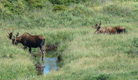 New Foundland met de klemtoon op land. Het is hier prachtig. We doen alleen de westkant want naar het oosten en zuiden is nog eens ca. 650 km en de komende dagen wordt er nog veel regen verwacht. Dus nemen we morgen de ferry weer terug naar Nova Scotia .Ik ben blij dat we hier zijn geweest het is mooi, we hebben weer veel gezien en gedaan ondanks de regen zo af en toe. We hebben nu meer moose gezien dan verleden jaar in Alaska. Het blijven rare beesten, blijven rustig een tijdje midden op de weg staan kijken jou ook aan en gaan dan terug of lopen door. Van Channel Ports aux Basques naar Rocky Harbor is een mooie weg met veel meren ,ik ben nog nooit in Schotland geweest maar ik denk dat het daar op lijkt, kleine visserdorpjes, en veel zee met daar achter bergen,vol met dennen en lof bomen. Er zijn hier ook beren. Er is 1 grote rots die oranje lijkt dat komt door de mineralen die er in zitten. Het is een oceaankorst die naar boven is geduwd , ze doen hier ook proeven want ze denken dat deze korts op die van planeet mars lijkt, Ik heb het niet helemaal begrepen, maar zoiets is het! Toen naar St. Anthony helemaal in het noorden, walvissen gezien,en veel muggen en zwarte vliegjes die enorm steken. Een vikingdorp dat is nagebouwd met plaggenhutten, en 3 mensen die interessante dingen vertellen over de tijd dat de Vikingen hier waren,anno1000. ze schijnen hier 25 jaar af en toe gebivakkeerd te hebben om hout mee terug te nemen, het hout in Groenland was van zeer slechte kwaliteit. Een vikingschip kon toen al 20 ton hout meenemen. Ze proberen hier van alles om de economie hier een beetje te stimuleren want er trekken veel vissers weg, er valt weinig te verdienen,vele gaan naar Alberta om in de gas en olievelden te werken.
