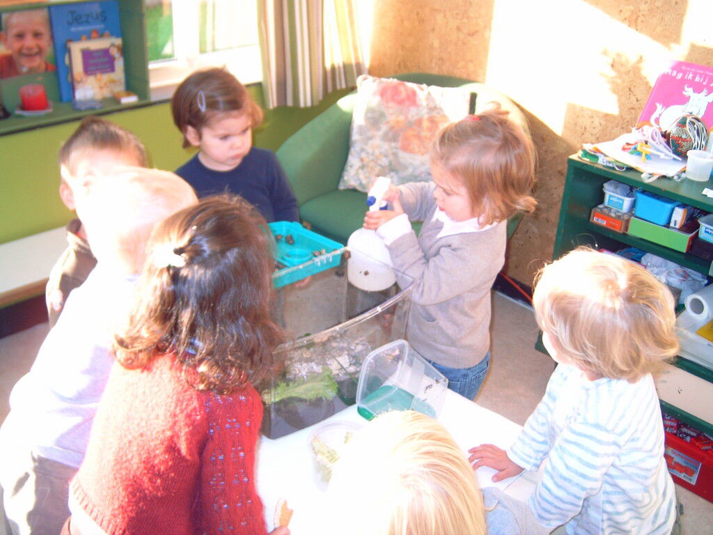 Deze morgen mochten we opnieuw enkele nieuwe slakjes verwelkomen in ons slakkenhotel. We mochten de slakjes besprenkelen met water en eten geven. De slakjes zitten allemaal samen en zijn precies één grote slakkenfamilie. We mochten gras stempelen om onze gekleurde slakjes in te laten wonen. In de namiddag zegden we nog eens ons versje.