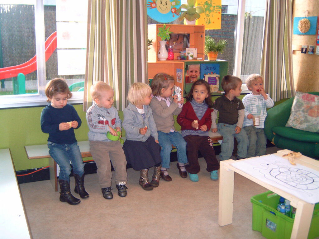 Daarna vertelde de juf een verhaaltje over een vogeltje dat niet durfde vliegen. Sem, de slak hielp het vogeltje. Ze werden de beste vriendjes. Daarna was er tijd om te spelen. Na de speeltijd vertelde de juf een verhaaltje over een slak die niet kon kiezen tussen twee prachtige slakkenhuisjes. Wij mochten stemmen. We vergeleken de stemmen. De slak kon nog steeds niet kiezen. Ze bleef dus in haar oude huisje. Na een drukke, maar leuke dag waren we moe, en was het tijd om naar huis te gaan!