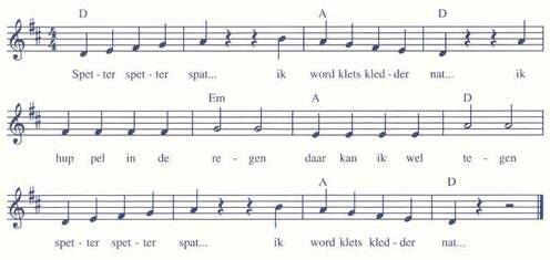 Na de middag leerden we een liedje. 'Spetter spetter spat'