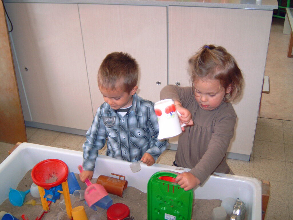 In de namiddag zongen we nog eens ons liedje 'Spetter spetter Spat'. We kregen 4 kleuters op bezoek uit de 1ste KK terwijl we speelden in de hoeken.