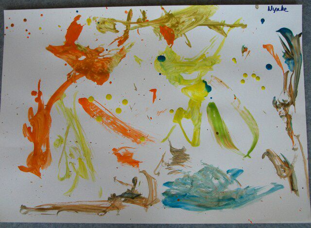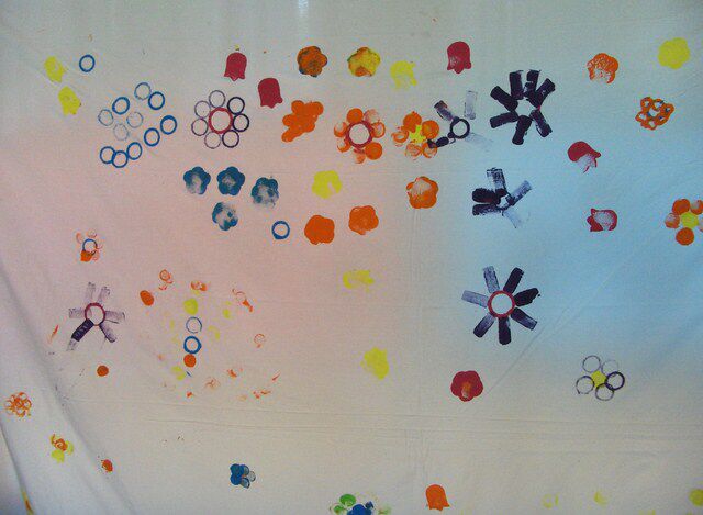 Dit is ons groepswerk rond de lente. We stempelden het zelf.