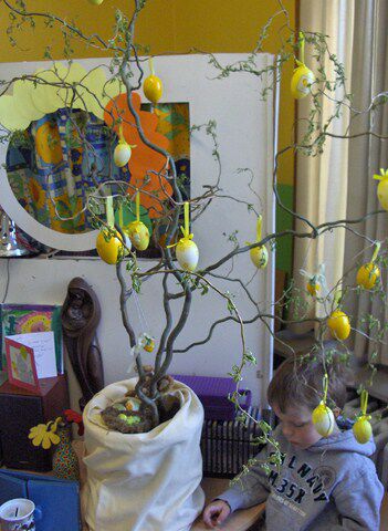 We nemen de paaseitjes in ons mandje mee naar huis. Dankjewel paasklokken!