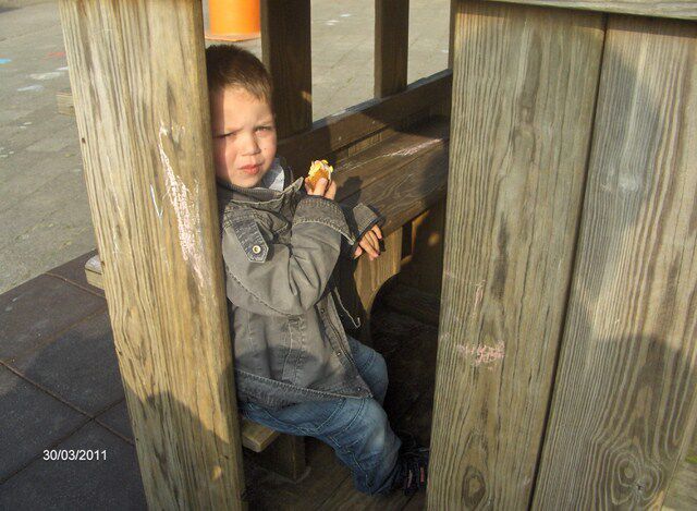 Overal in de speeltuin lagen er eitjes! Start....en we mochten gaan zoeken!