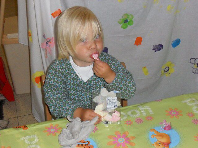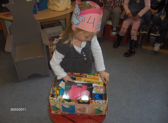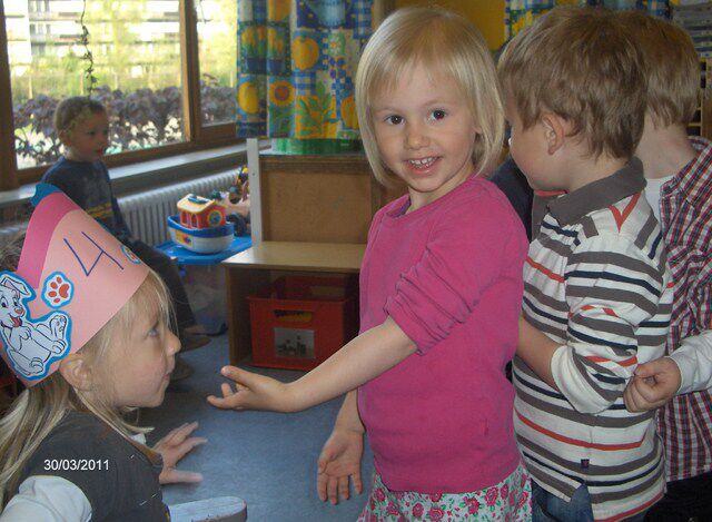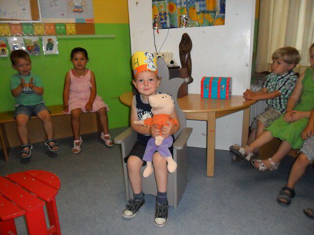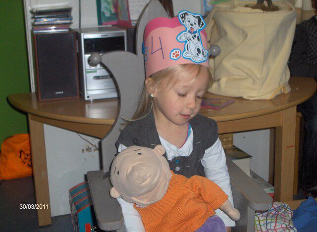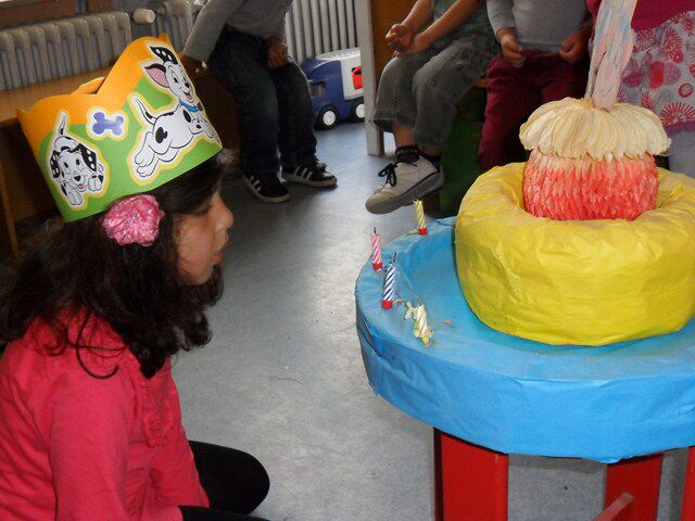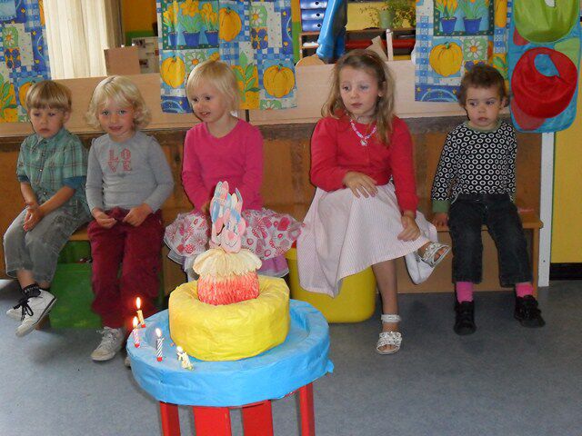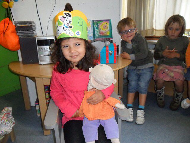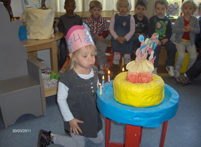 De kleuters die tijdens de vakantie jarig zijn,vieren we in juni. Imane is als eerste aan de beurt...