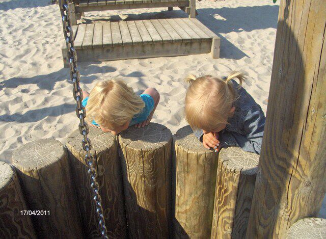 In onze zandbak lijkt het wel een oerwoud met al die wilde dieren .