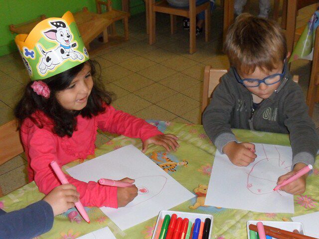 We maken een mooie tekening voor in haar verjaardagsboek.