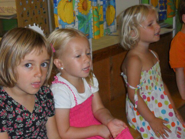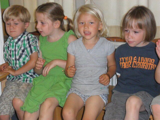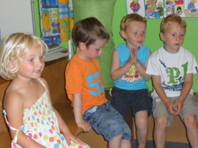 We zongen en dansten ons 'regenboogliedje' voor de Zonnekoning.
