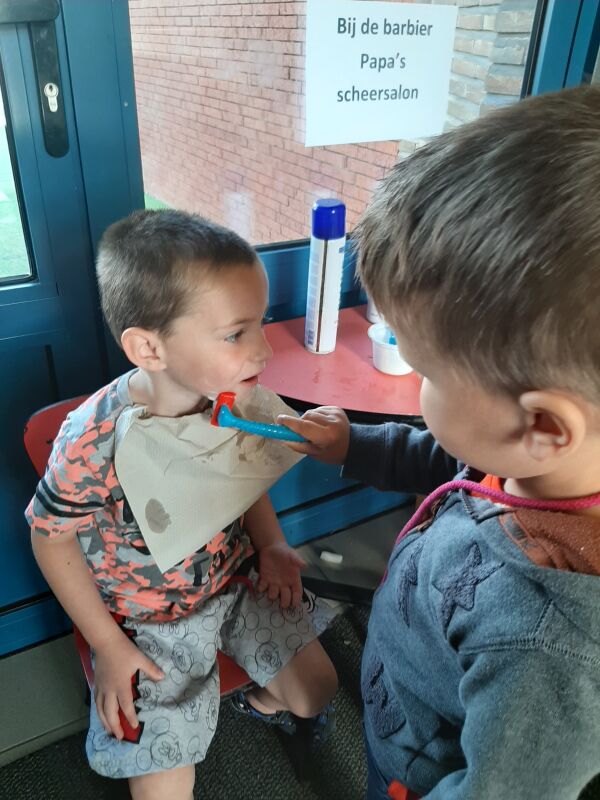 Superhelden moeten zich ook scheren, dus dat kwam ook aan bod. Heel leuk om de kleuters bezig te zien. Kijk maar zelf eens.
