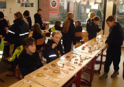 Vandaag werd onze klas omgetoverd in een winkel...al de c-klasssen én 1d kwamen langs om te kijken naar de handgemaakte spulletjes uit India! De a-klassen bezochten de winkel in 4a en de b-klassen trokken naar 6a. Bij kijken bleef het niet...de oorringen, olifantjes, spiegeltjes, halskettingen, ... vlogen de deur uit! De winkel draaide goed en dit alles om geld in te zamelen voor een schooltje in India dichtbij de Himalaya waar het in de winter steenkoud is. In elk geval van harte dank aan allen die dit lezen en meegeholpen hebben om al een deel van de school bijeen te krijgen!