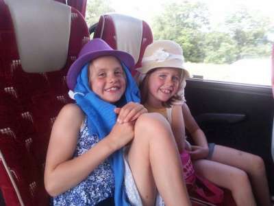 Fran en Emme houden een verkleedpartijtje op de bus ;-)