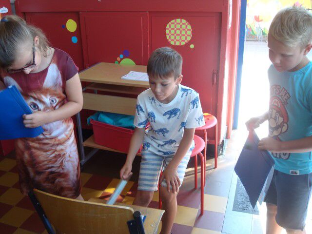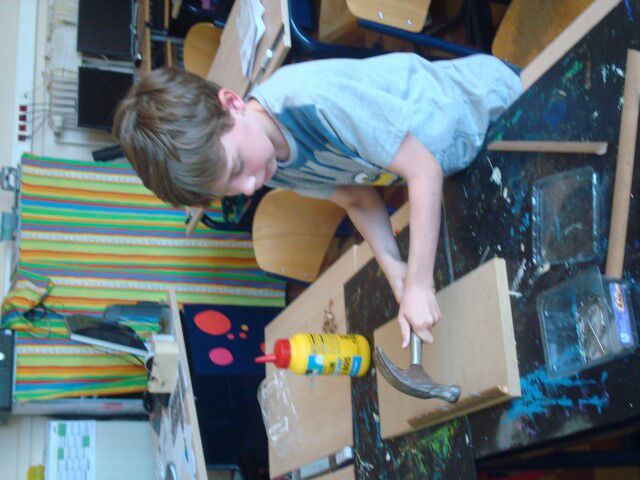 We gingen aan de slag ; timmeren , lijmen , zagen , ....