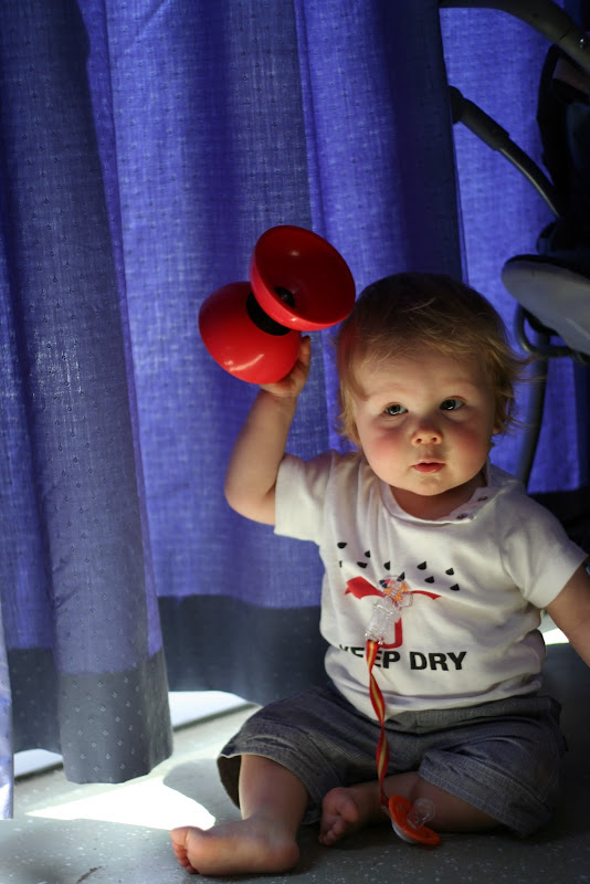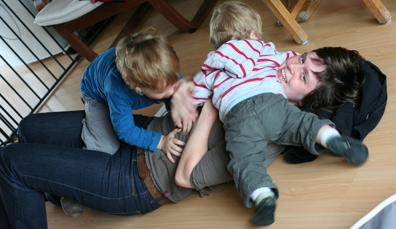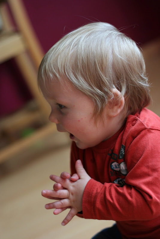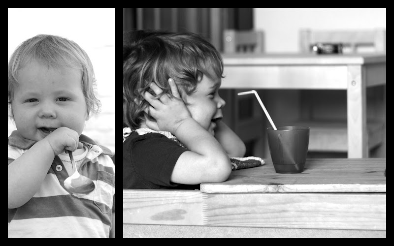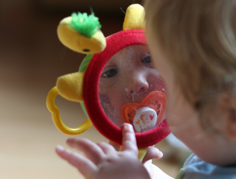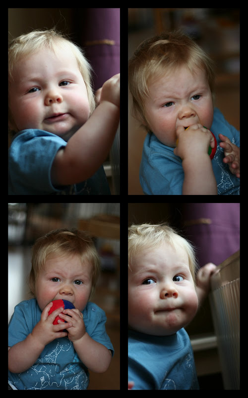Twan heeft nu 4 tandjes, en een geruststellende fascinatie voor alles wat wielen heeft.