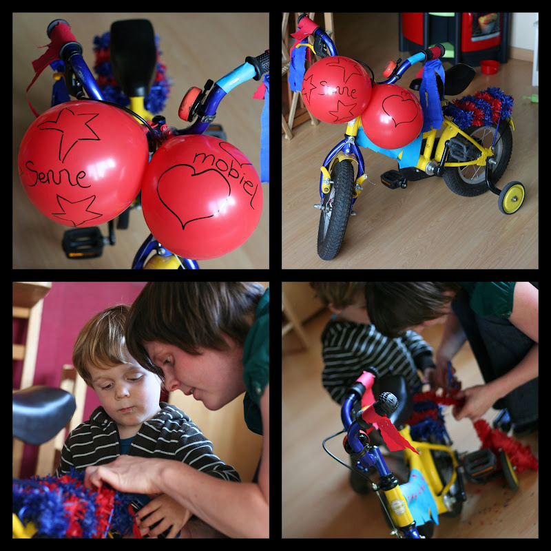Senne mocht z'n fiets versieren en meenemen naar school.