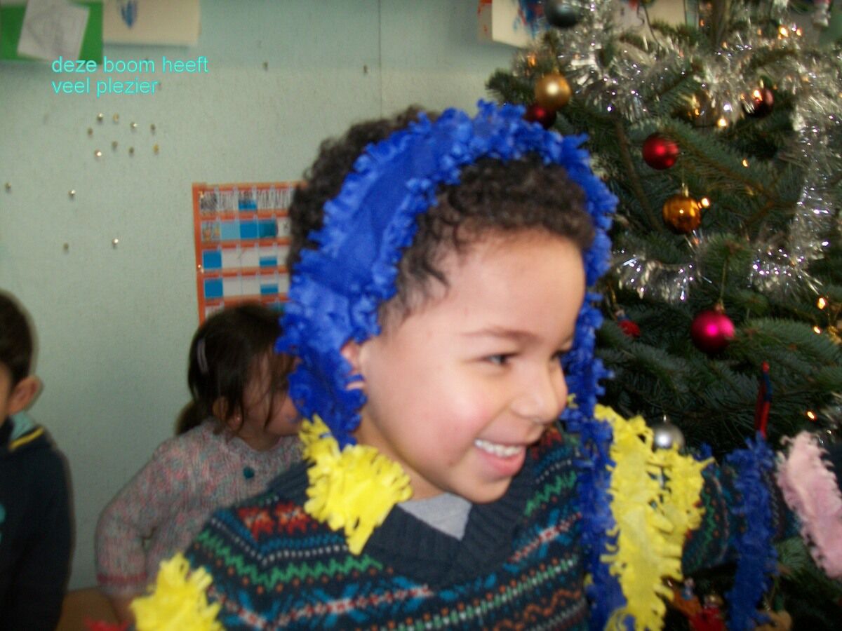 Nadien speelden de kleuters zelf kerstboom ! Ze werden versierd met slingers ....