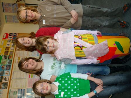 Buenos dias ! Toen we boven kwamen moesten we direct in het vliegtuig stappen . We vertrokken naar Guatemala,dat was 18 uur vliegen. Als we in de klas waren, kwamen we te weten dat het in Guatemala 7uur vroeger is dan bij ons . De juf deelden foto's uit over Guatemala. ze had ook een groot doek op het bord hangen. Daar moesten we de foto's aan hangen. Iedereen moest om beurt naar voor komen en de foto ophangen . Daarna hadden we Frans . Na het zwemmen deden we het grote Maya-spel. Door een reuzespel kwamen we allerlei verschillende dingen te weten over de Maya's. Straffe mannen, die Maya's Natuurlijk moesten we ook eens zingen voor onze jarige, Charlotte werd 11 jaar en dat moest gevierd worden !