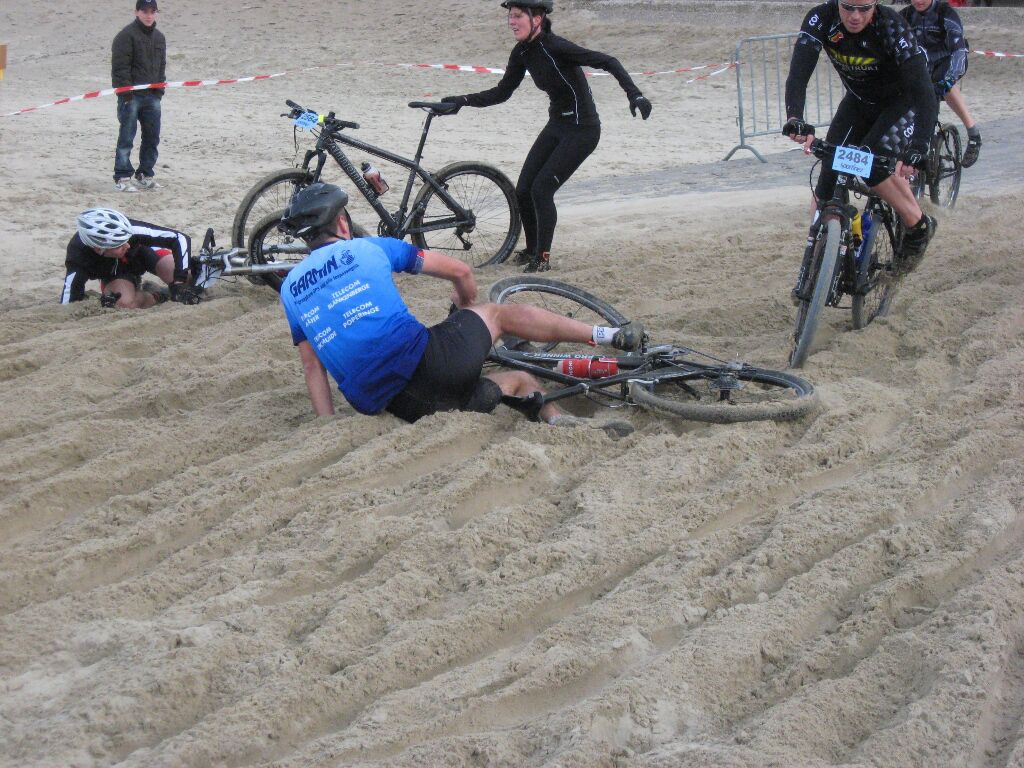 strandrace voor mountainbikers in Scheveningen. Bij de deelnemers is er