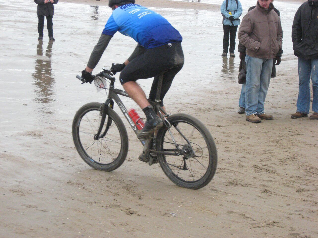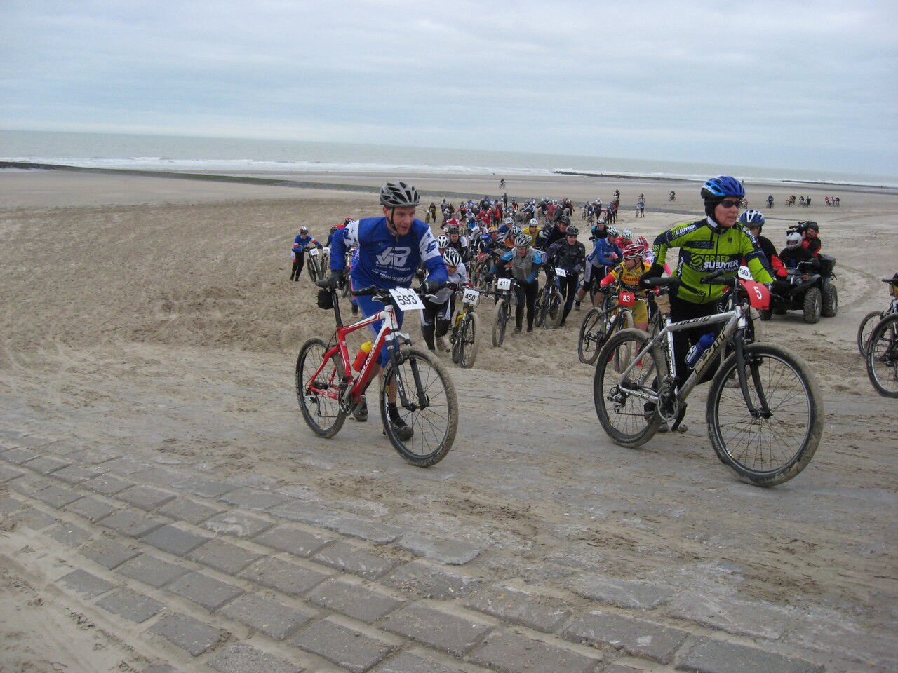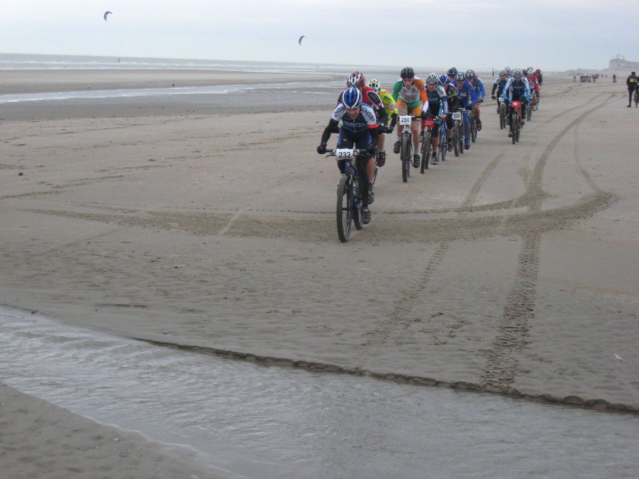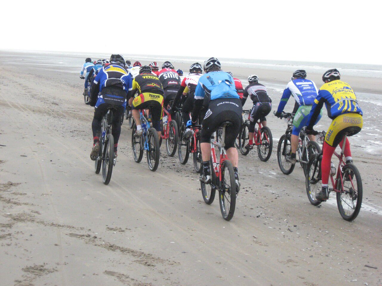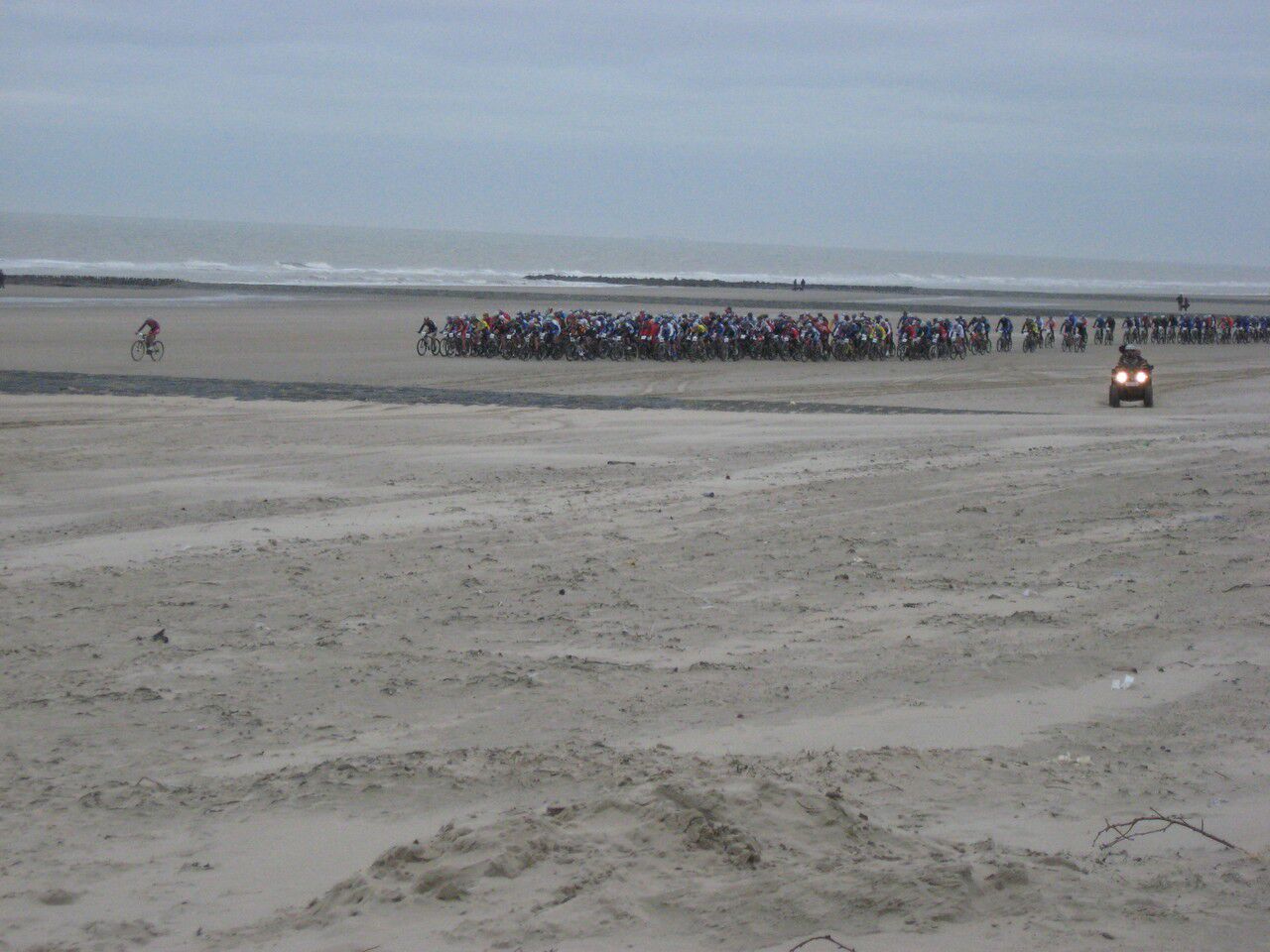 De wedstrijd in Knokke valt op de laatste dag van de krokusvakantie. Op die dag keer ik terug uit het verre Italië alwaar ik (samen met kameel Nick) een hoogtestage in de sneeuw gepland heb. Even nog een sprankeltje hoop. Na een vermoeiende reis en een quasi slapeloze nacht, gekraakt uit de bus stappen, direct afreizen naar Knokke en er de kamelenkleuren verdedigen... een mens moet soms niet te moeilijk doen over de ideale voorbereiding. Helaas heeft men in Knokke (na vorig jaar, waar het peleton om mysterieuze redenen een uur voor hoog water in het mul zand moest rondploeteren) een getijdenexpert onder de arm genomen die het startuur prompt op 10u30 vastklokte. Op dat uur zit ik nog turend over de autostrade mijn pistolets te verorberen in de bus, wat deelname wat moeilijk maakt.