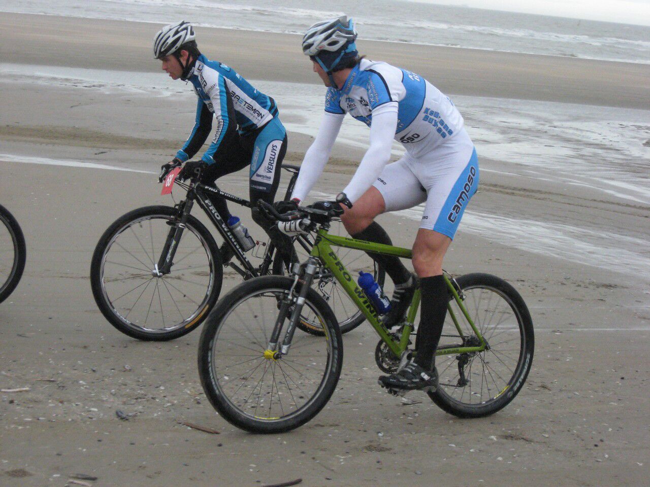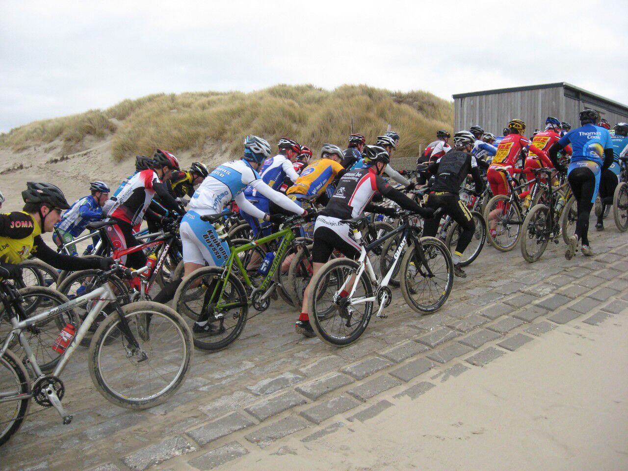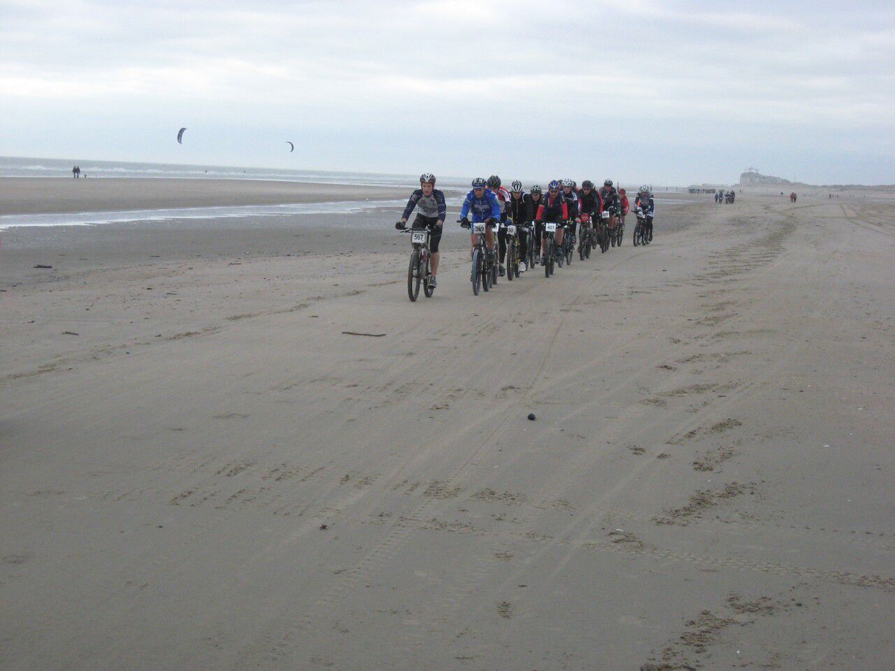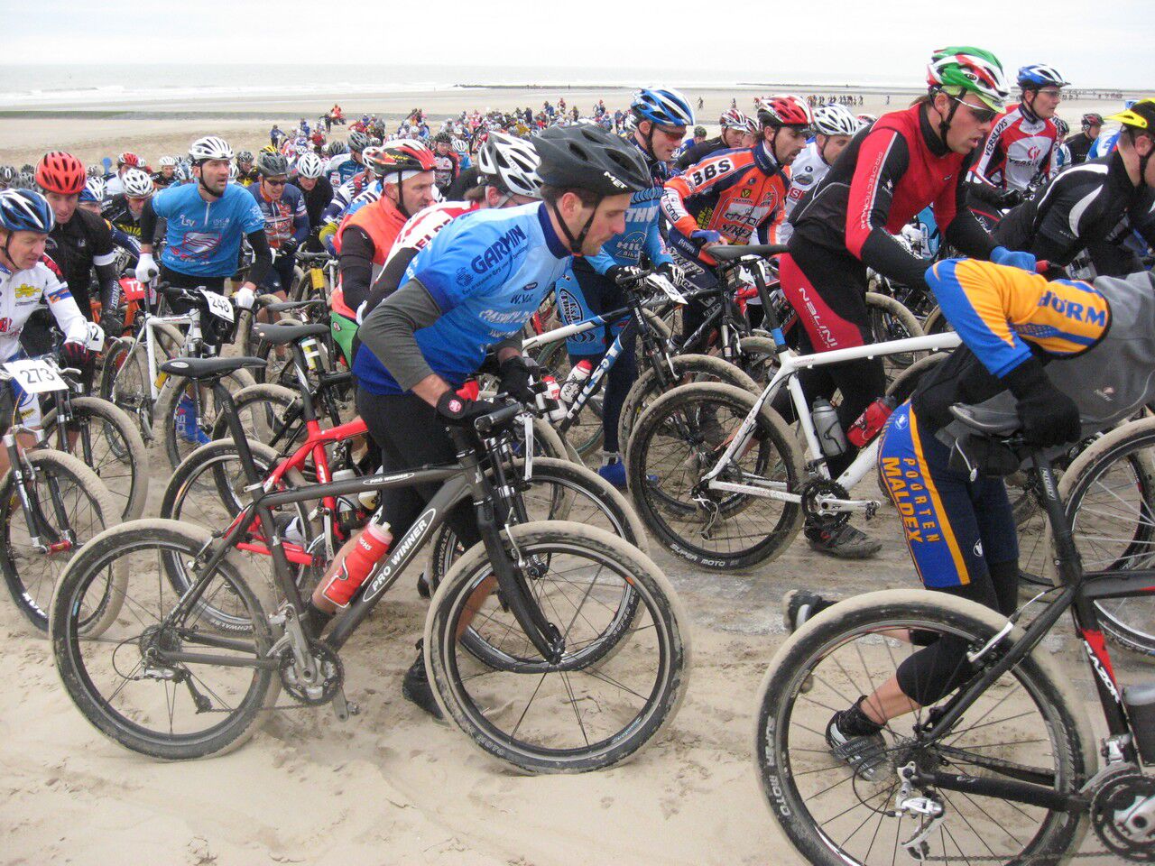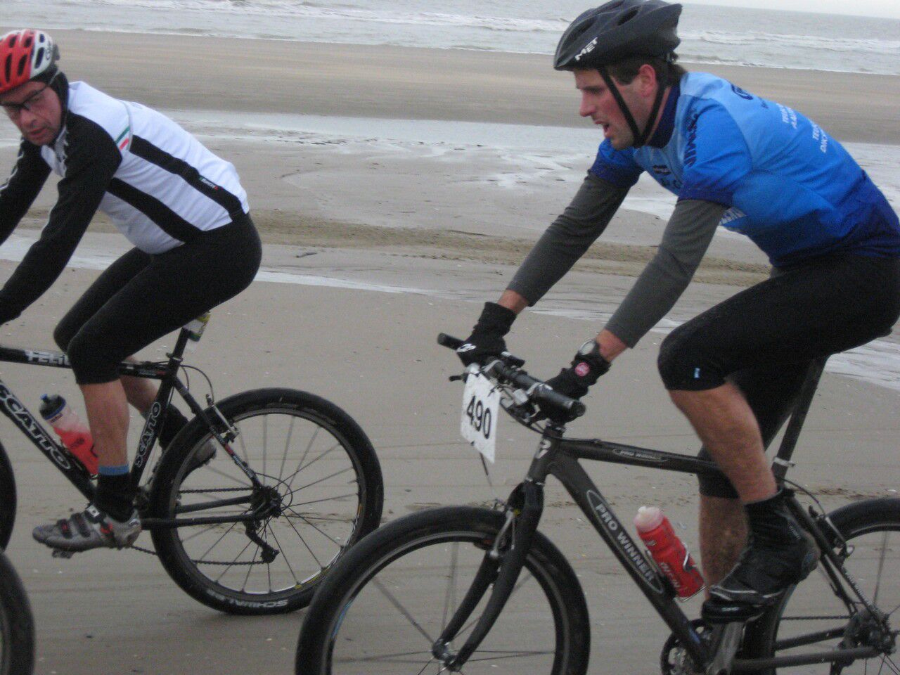 De wedstrijd in Knokke valt op de laatste dag van de krokusvakantie. Op die dag keer ik terug uit het verre Italië alwaar ik (samen met kameel Nick) een hoogtestage in de sneeuw gepland heb. Even nog een sprankeltje hoop. Na een vermoeiende reis en een quasi slapeloze nacht, gekraakt uit de bus stappen, direct afreizen naar Knokke en er de kamelenkleuren verdedigen... een mens moet soms niet te moeilijk doen over de ideale voorbereiding. Helaas heeft men in Knokke (na vorig jaar, waar het peleton om mysterieuze redenen een uur voor hoog water in het mul zand moest rondploeteren) een getijdenexpert onder de arm genomen die het startuur prompt op 10u30 vastklokte. Op dat uur zit ik nog turend over de autostrade mijn pistolets te verorberen in de bus, wat deelname wat moeilijk maakt.