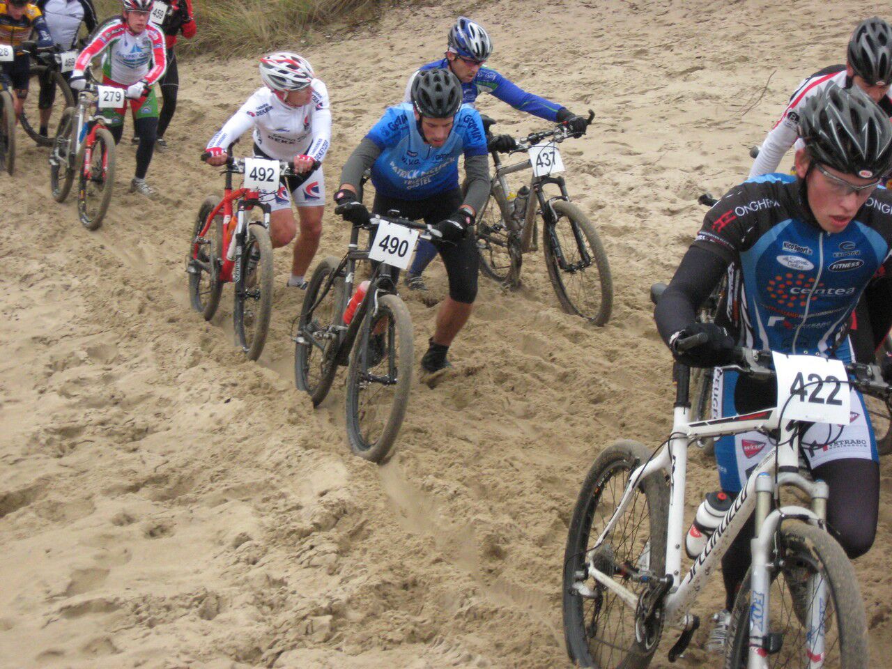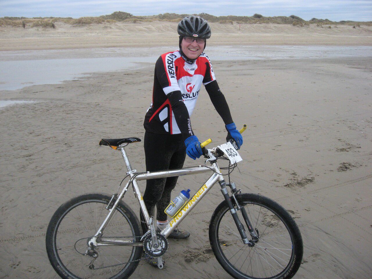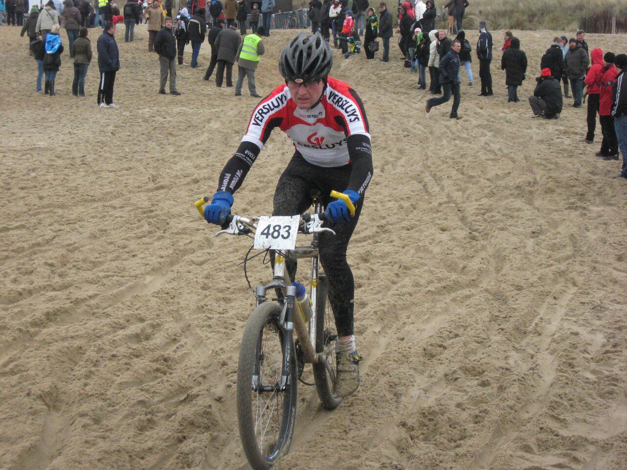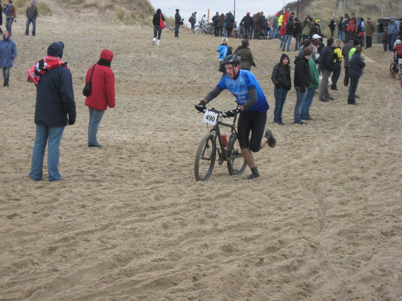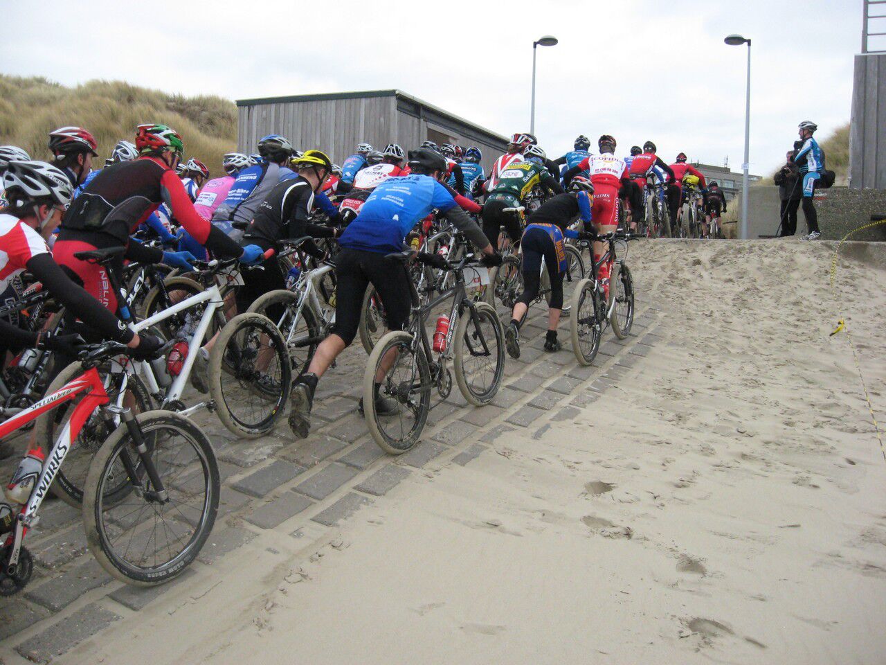 De wedstrijd in Knokke valt op de laatste dag van de krokusvakantie. Op die dag keer ik terug uit het verre Italië alwaar ik (samen met kameel Nick) een hoogtestage in de sneeuw gepland heb. Even nog een sprankeltje hoop. Na een vermoeiende reis en een quasi slapeloze nacht, gekraakt uit de bus stappen, direct afreizen naar Knokke en er de kamelenkleuren verdedigen... een mens moet soms niet te moeilijk doen over de ideale voorbereiding. Helaas heeft men in Knokke (na vorig jaar, waar het peleton om mysterieuze redenen een uur voor hoog water in het mul zand moest rondploeteren) een getijdenexpert onder de arm genomen die het startuur prompt op 10u30 vastklokte. Op dat uur zit ik nog turend over de autostrade mijn pistolets te verorberen in de bus, wat deelname wat moeilijk maakt.