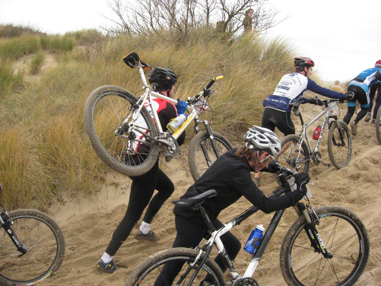 Zoals enkele dagen geleden vermeld duikt er nieuwe schokkende informatie op wat betreft het vermeende omkoopschandaal dat aan het licht kwam tijdens beachrace Vosseslag. In een van de vorige posten kon men lezen over de toch wel verdachte opgave van kameel Nick. De redactie kreeg hierop een nieuwe foto in zijn bezit via een anomieme bron ( voor de betrokkenen : aandringen heeft geen zin - ik maak hem/haar niet bekend ). Het betreft een beeld van de eerste ronde, op de superzware loopstrook bergop in de duinen van De Haan. Hier was het voor iedereen doseren, de race was immers nog lang en de hier verspeelde krachten zouden later onontbeerlijk zijn. Dit in gedachten zag met het hele peleton dan ook relatief rustig naar boven trippelen, zuinig omspringend met de energie. Nick echter, die op dat moment al wist dat hij zijn energie maar voor een bepaald deel van de race zou nodig hebben kon hier niet weerstaan aan zijn eergevoel. Voor alle atleten die wel zouden uitrijden zou het zelfmoord betekenen : De duin opstormen met de fiets in de nek gezwierd, en dan nog met reuzepassen naar boven stormen, dikke drommen mountainbikers inhalend ! Oordeel zelf. Verdacht gedrag of niet?