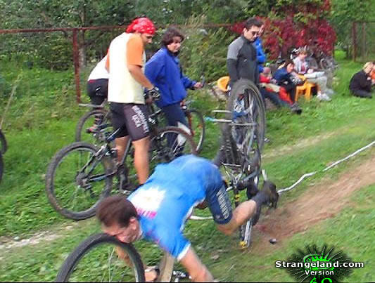 Beste lezers vandaag keren we eventjes terug in de tijd. Terug naar de bakermat van de Kamelen van het Noorden. We bevinden ons nog in de vorige eeuw. Sinds kort beschikken Pete & ik over een fiets die niet alleen gemaakt is om over fietspaden te sjezen. Prompt begeven we ons dan ook in de Bredense Duinen. Zoals alle kamelen wel weten bevindt zich tussen post 3 en post 6 een aangenaam baantje, weliswaar onderbroken door een verraderlijk trapje dat ruw geschat een twaalftal treden telt. Komende uit het Westen dienen we deze trap dus af te dalen. Ik nijp de remmen toe en stap af. Mijn compagnon van het eerste uur doet hetzelfde maar herinnert zich de tvbeelden van de cross die hij het weekend voordien op zijn tv zag. Fluks tilt hij zijn bike op en met een sierlijke zwaai steekt hij zijn arm tussen het kader en als een echte cyclocrosser zwiert hij zijn vehikel over zijn toen al fel ontwikkelde schouder. Gedurende deze elegante move blijft onze held trouwens met vederlichte tred gewoon doorlopen. ' Net zoals in de koers' hoor ik hem euforisch gillen. Talent drijft boven, zoveel is duidelijk. Enkele tellen later echter gaat het fout. Een fijn laagje zand over de door erosie geteisterde treden maakt ze spekglad-wie had dat nu kunnen peinzen. Nog een minieme fractie later zit onze held verbijsterd op zijn gat. Talent, zoals een ruwe diamant, zo bleek nogmaals, dient gesmeed te worden. Sindsdien zag niemand nog iemand deze vermaledijde trap aan dergelijke snelheid afdalen.
