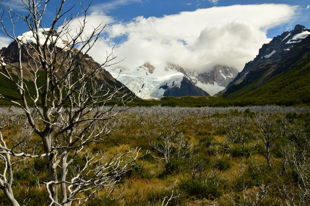 zicht op de Cerro Fitz Roy, een granietrots van meer dan 3000m. We laten ons
