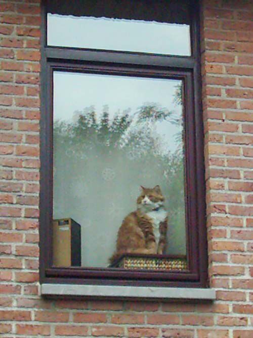 Een poes zit graag op de uitkijk. Bijvoorbeeld: een muis of een vogel of een andere poes die hem wil aanvallen. Op deze foto kan je zien hoe Charel op de uitkijk zit. Hij zit op de poort van de tuin. En als hij iets gezien heeft gaat hij op de tuinschermen lopen en het proberen te vangen.