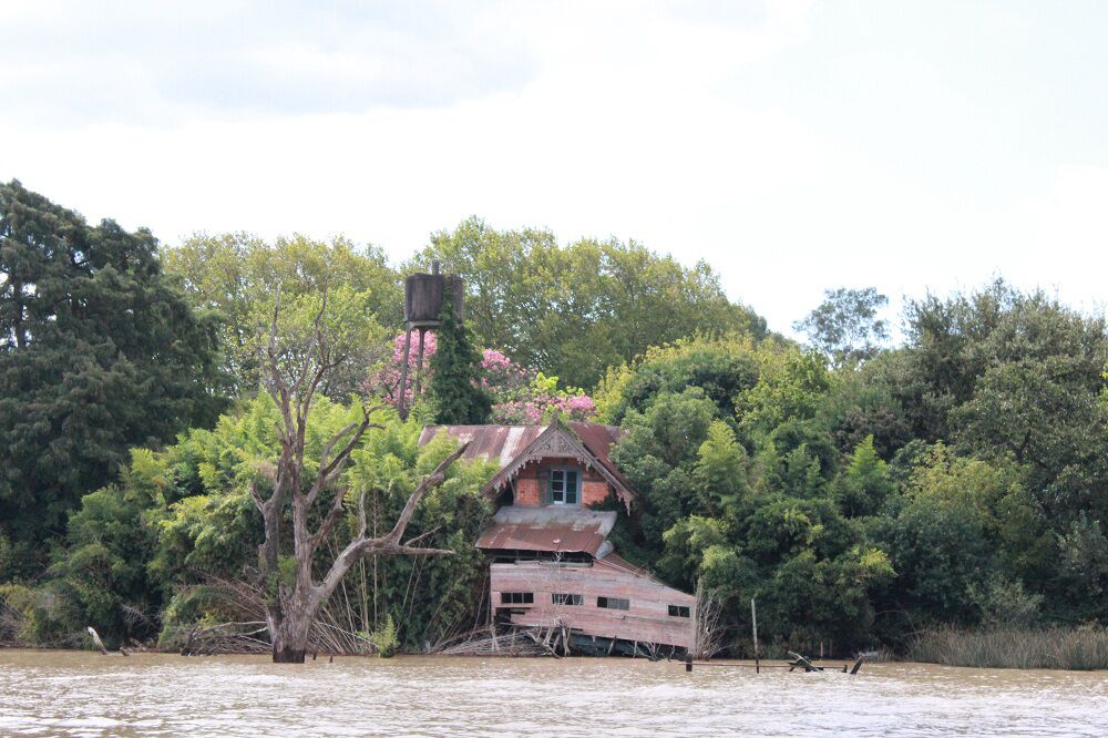 bewoonde eilandjes gecreëerd door de rivier die ook de enige verbinding is met