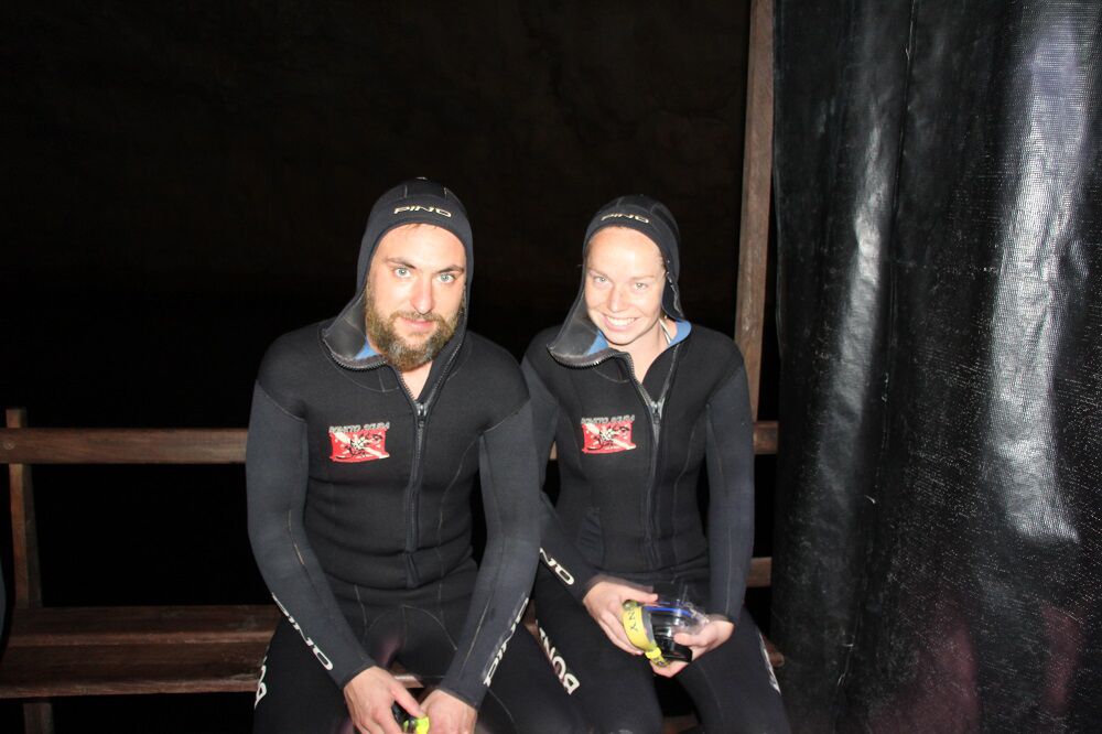 Met nog een plastieken buis in uw bekkie kruipt ge al bibberend het felblauwe water in.