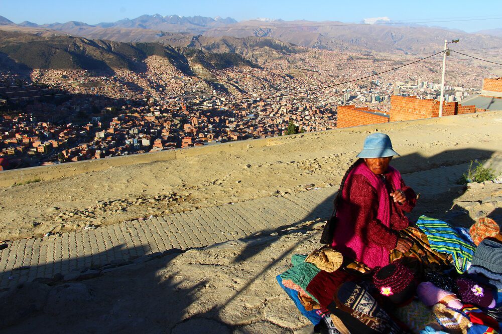 Ga met de teleferique naar El Alto, op de rand van de kloof waarin La Paz centrum ligt, en uw kousen blijven daar ook alleen achter.