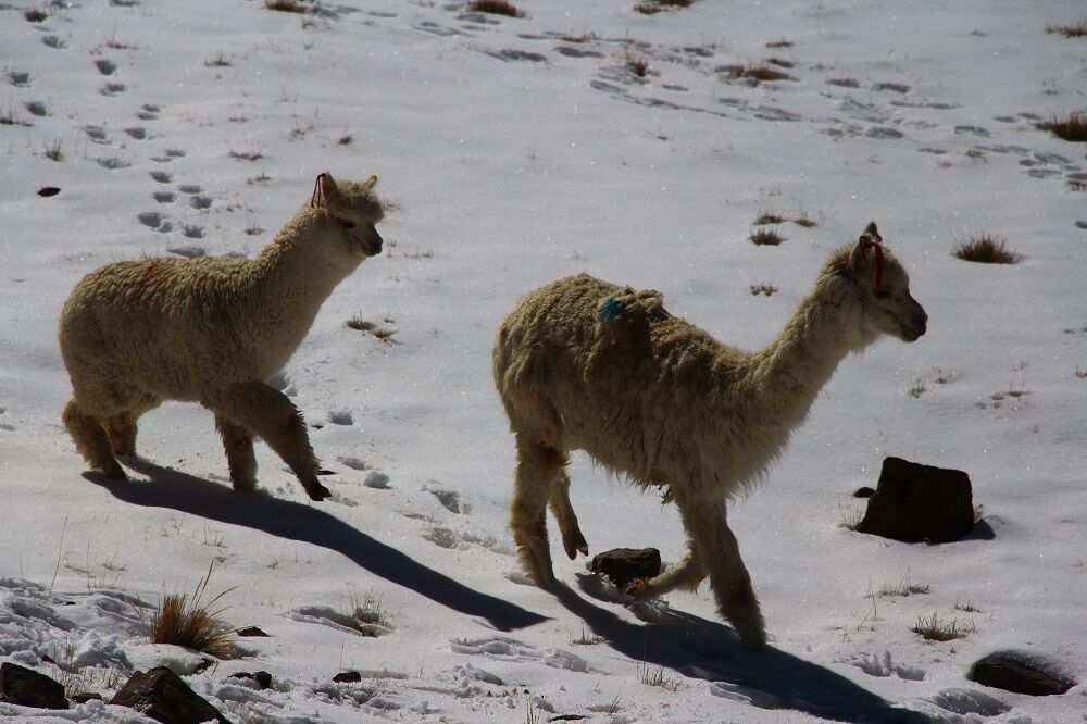 Via een 4500 meter- pas, met permafrost, een enorm veld met op elkaar gestapelde stenen, doorheen de vulkanen naar Chivay.