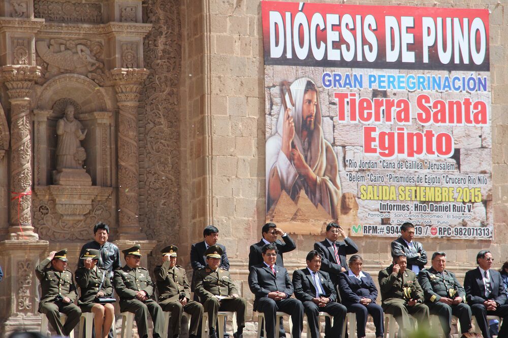 Allemaal zoekend naar die glimp van bewondering van Señor de hoogste legerpief die in Puno woont.