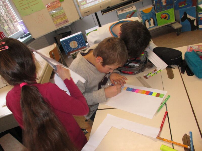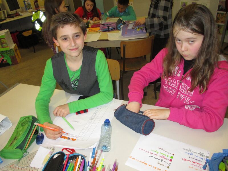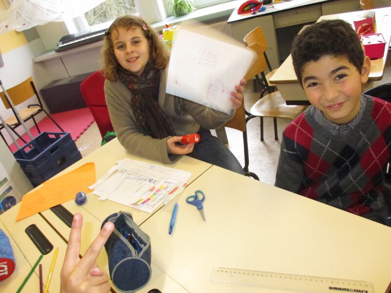 Hier alvast enkele kennismakingsfoto's en ook foto's waarbij ze de boekenwijzer knutselden.