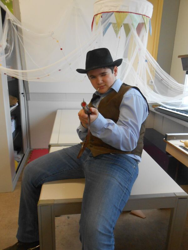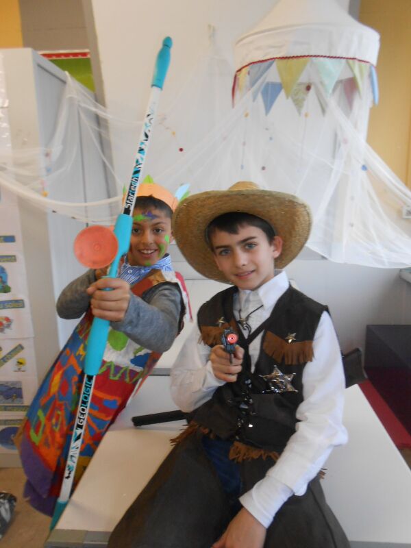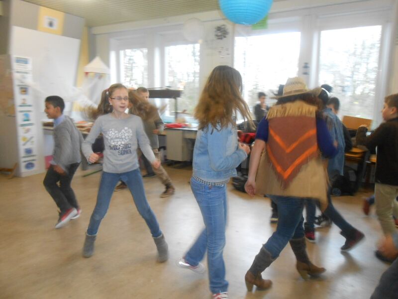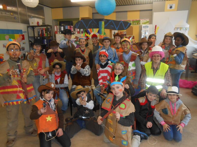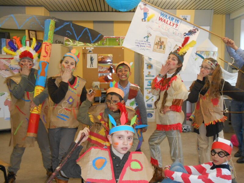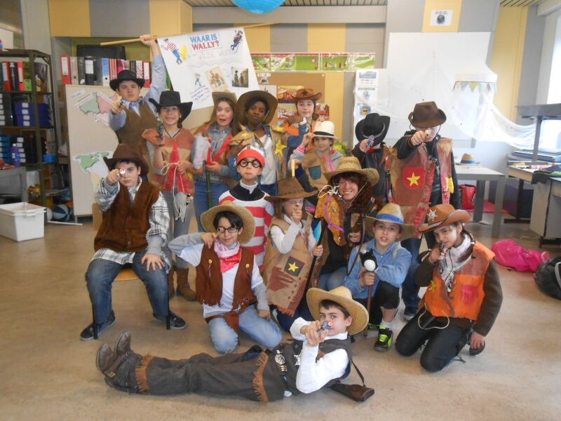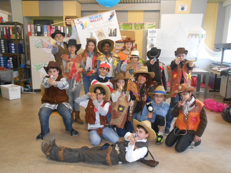 Vandaag 27/02 hebben we in de namiddag een film gekeken: Suske en Wiske & de Texas rakkers. We mochten van de juf dan ook chips meedoen. Er was: Grills, paprika chips, ketchup chips, chips naturel, Bicky chips,.. Het was heerlijk. Toen de film gedaan was, had de juf ook nog Just Dance opgezet, iedereen danste mee. Maar er waren ook kinderen die hun kostuum aan het afwerken waren voor Carnaval. Jaja, morgen is het carnaval op school op school. Ons thema van het vijfde is: Wally in het wilde westen, het zesde is Wally in Wallyland en nog veel andere thema's.