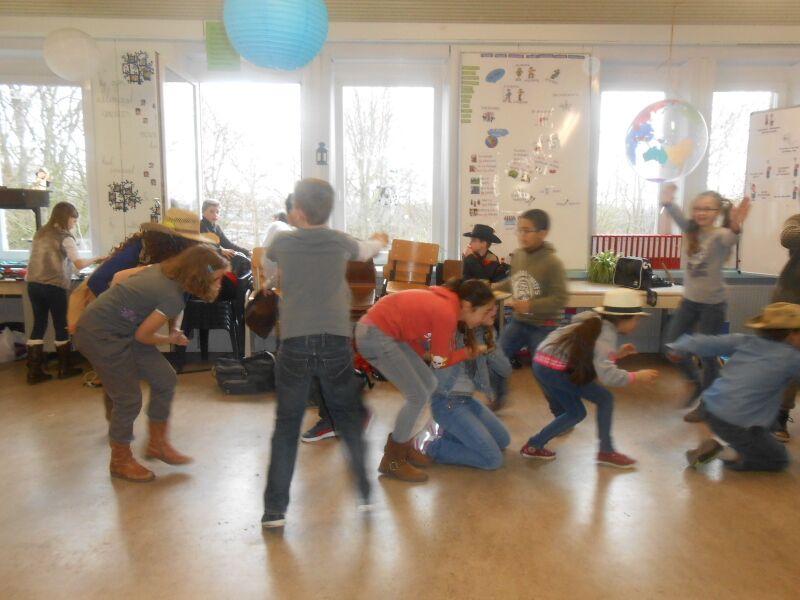 Vandaag werkten we met een doorschuifsysteem. We begonnen bij onze juf, waar we verschillende dansjes deden. Daarna gingen we naar juf Corry om karaoké te zingen. Tot slot mochten we bij juf Linde gaan pingpongen.