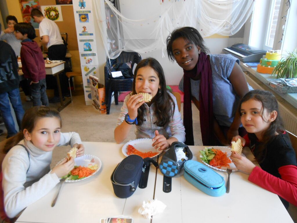 We zijn alvast weer begonnen met school! Ik hoop dat iedereen goed heeft uitgerust. Hier alvast nog enkele leuke herinneringen aan ons kerstfeestje in de klas! We hebben gedanst, spelletjes gespeeld, en lekker gegeten. Een groep heeft deze keer gezorgd voor overheerlijke Croque Monsieurs. De lln konden kiezen tussen eentje met ham en kaas of eentje met mozzarella en tomaat. Enkele vrijwilligers verzorgden het groentebordje!