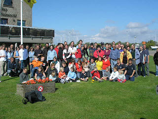 Zaterdagochtend 23 augustus. Het is een beetje bewolkt wanneer we in Nieuwpoort aankomen... Onderweg ook al enkele serieuse regenbuien gehad. Gaan we zeilen? 17 schippers stellen hun boot open voor ons. Briefing met de schippers... het weer is nog wat wisselvallig, 5 à 6 beaufort! Ze willen met ons als onervaren schippers geen risico nemen, we wachten nog een beetje af... Jan (de man die dit alles organiseerde) geeft uitleg en verdeelt de gezinnen over de bootjes. Ieder gezin gaat mee met zijn schipper en mag al eens op verkenning gaan.