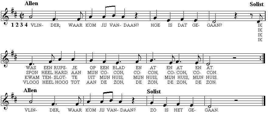 Strofe 2: We kunnen er zingen we mogen er dansen we kunnen er springen en we mogen er schransen