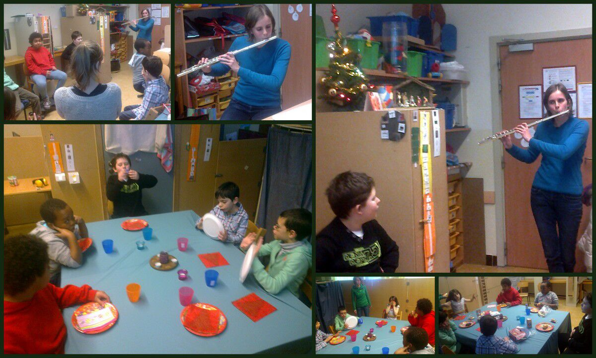 Juf Katrien kwam op haar dwarsfluit mooie Kerstliedjes spelen.