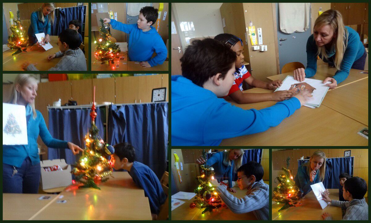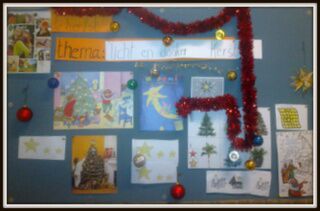 Hier enkele sfeerbeelden van ons themabord en van het MSST verhaal waarbij we de Kerstboom leren versieren.