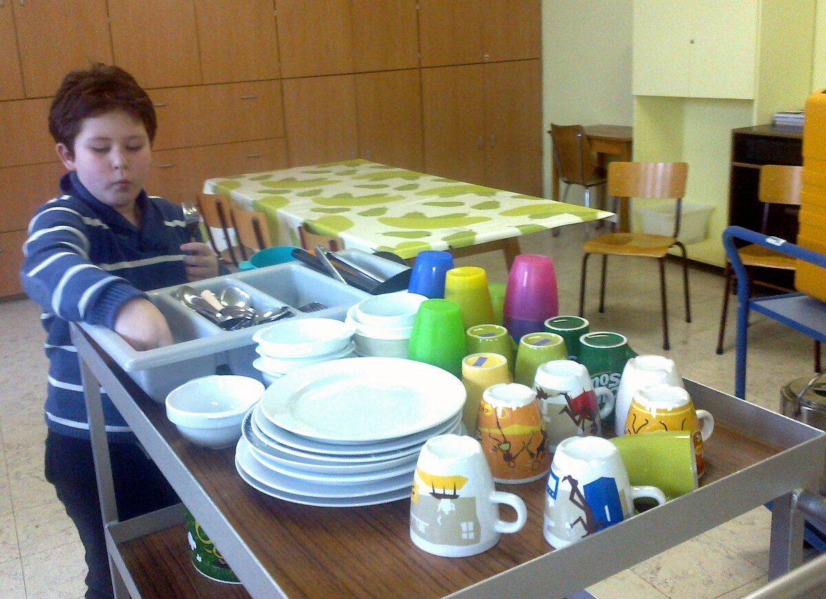 We kijken naar de foto. We bespreken wat we nodig hebben. We tellen hoeveel borden, messen, vorken,... we nodig hebben. En dan gaan we de tafels dekken. Zo oefenen we ons functioneel tellen en rekenen.