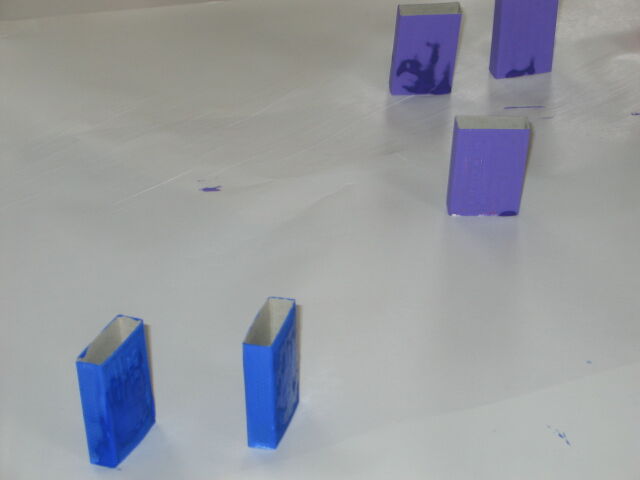 Met tongspatels maakten we omheining. Gewone pritt bleek niet stevig genoeg, dus moesten we op zoek naar sterkere lijm.