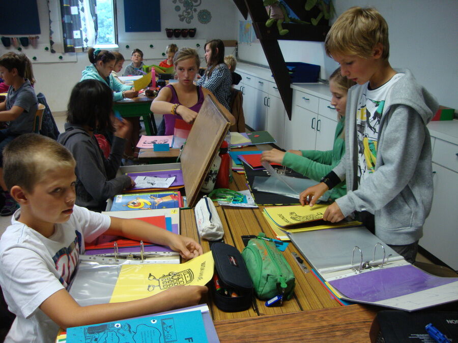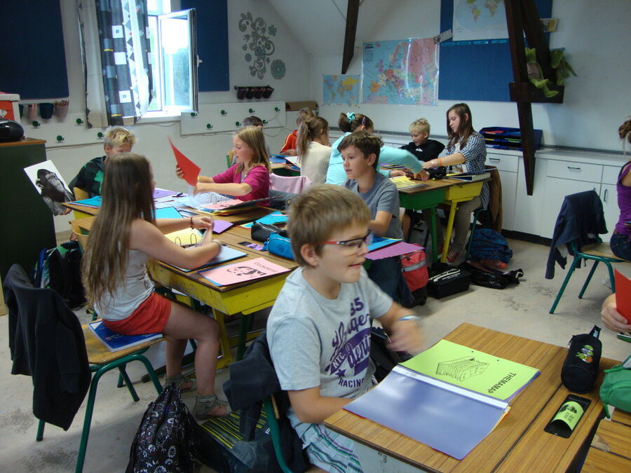 En nu moeten we weer aan het werk: rekenen, Frans, taal, spelling, w.o. en godsdienst.